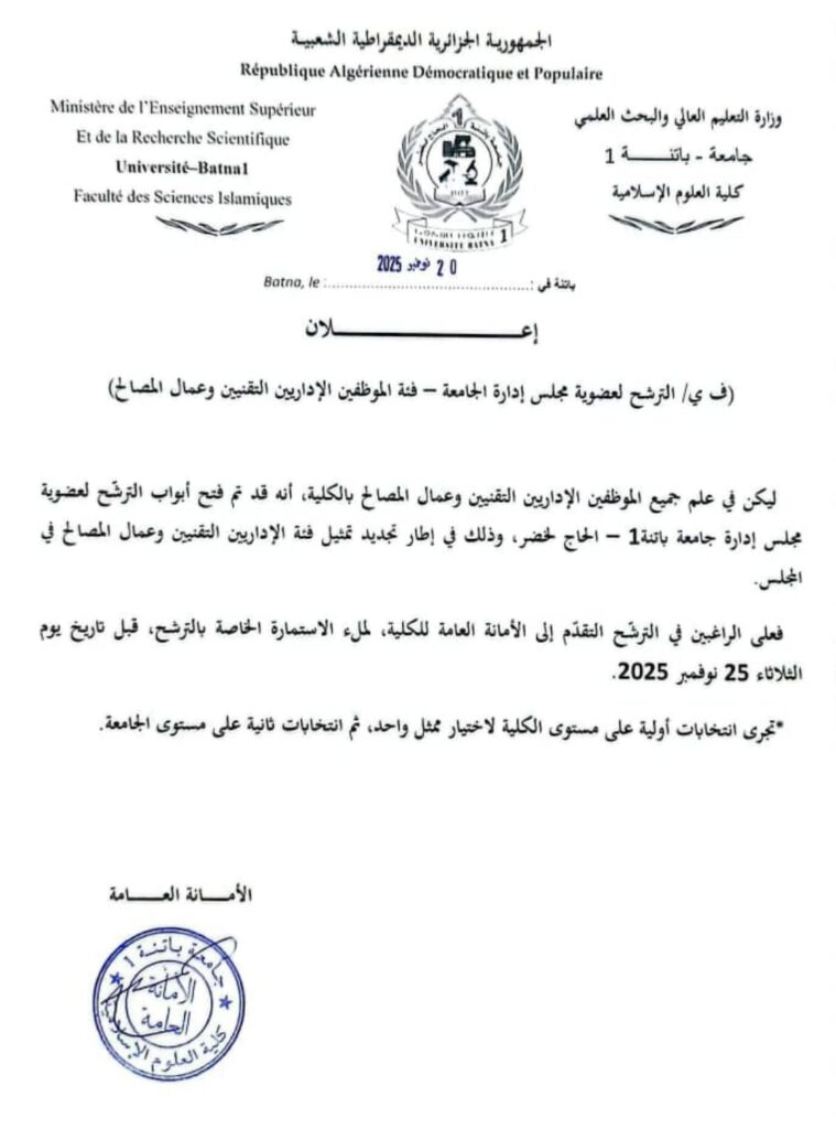 ف ي/ الترشح لعضوية مجلس إدارة الجامعة – فئة الموظفين الإداريين التقنيين وعمال المصالح